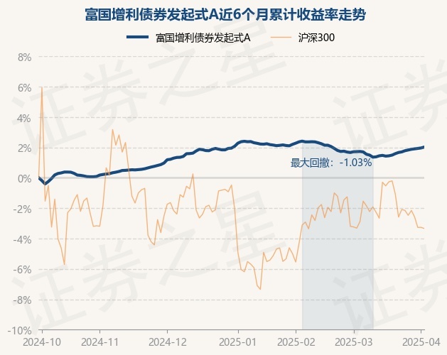 证券之星消息,3月31日,富国增利债券发起式A最新单位净值为1.0645元,累计净值为1.0805元,较前一交易日上涨0.03%。历史数据显示该基金近1个月上涨0.26%,近3个月下跌0.14%,近6个月上涨1.93%,近1年上涨3.92%。该基金近6个月的累计收益率走势如下图: