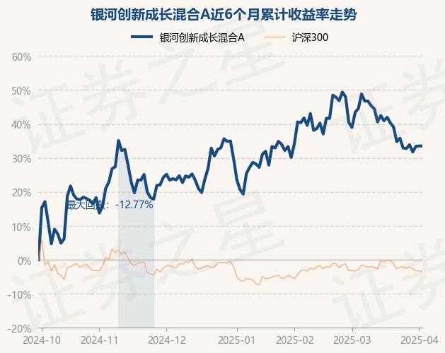 证券之星消息,3月31日,银河创新成长混合A最新单位净值为6.4425元,累计净值为6.4425元,较前一交易日上涨1.27%。历史数据显示该基金近1个月下跌5.01%,近3个月上涨2.86%,近6个月上涨33.41%,近1年上涨60.73%。该基金近6个月的累计收益率走势如下图: