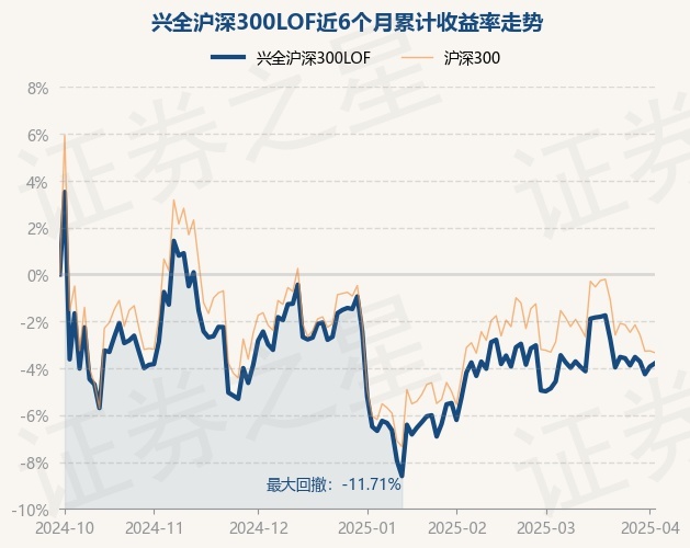 证券之星消息,3月31日,兴全沪深300LOF最新单位净值为2.3889元,累计净值为2.3889元,较前一交易日下跌0.56%。历史数据显示该基金近1个月上涨0.73%,近3个月下跌1.88%,近6个月下跌4.26%,近1年上涨11.28%。该基金近6个月的累计收益率走势如下图: