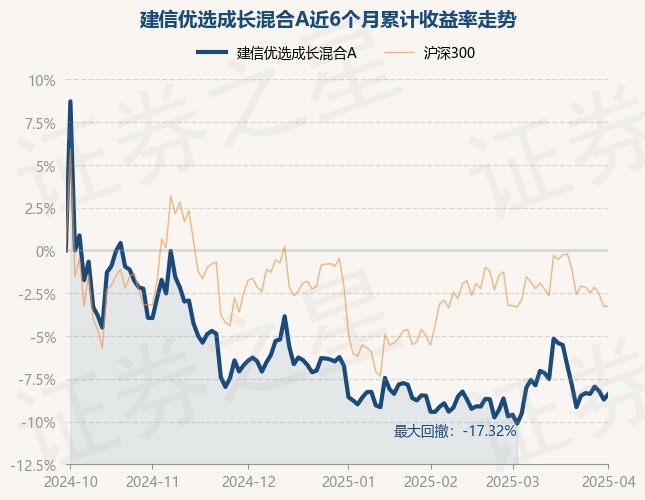 证券之星消息,3月31日,建信优选成长混合A最新单位净值为2.2389元,累计净值为4.1839元,较前一交易日下跌0.53%。历史数据显示该基金近1个月上涨1.08%,近3个月下跌2.12%,近6个月下跌8.72%,近1年下跌0.34%。该基金近6个月的累计收益率走势如下图: