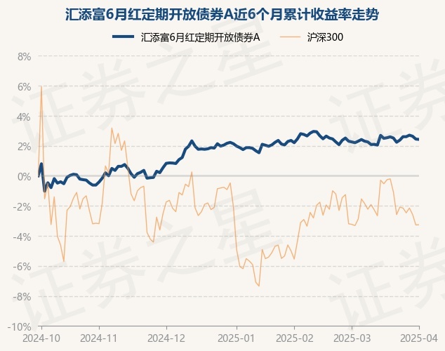 汇添富6月红定期开放债券A为债券型-混合二级基金,根据最新一期基金季报显示,该基金资产配置:股票占净值比14.84%,债券占净值比102.75%,现金占净值比2.13%。基金十大重仓股如下:
