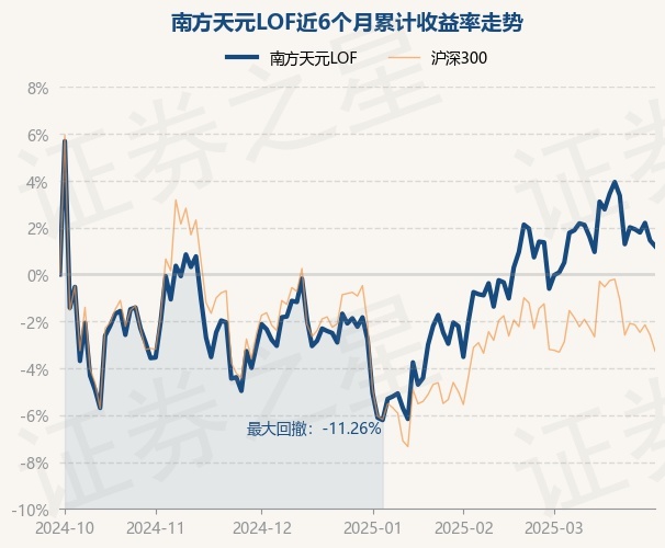 证券之星消息,3月31日,南方天元LOF最新单位净值为3.3502元,累计净值为3.3502元,较前一交易日下跌0.24%。历史数据显示该基金近1个月上涨1.83%,近3个月上涨4.09%,近6个月上涨1.21%,近1年上涨14.07%。该基金近6个月的累计收益率走势如下图: