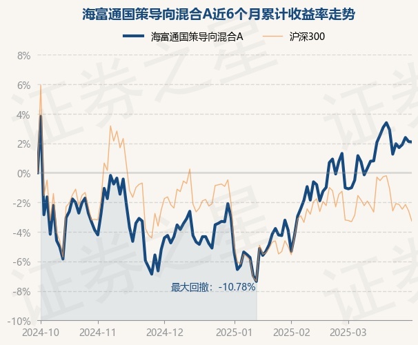证券之星消息,3月31日,海富通国策导向混合A最新单位净值为1.9528元,累计净值为2.9919元,较前一交易日下跌0.03%。历史数据显示该基金近1个月上涨3.14%,近3个月上涨5.27%,近6个月上涨2.09%,近1年上涨11.9%。该基金近6个月的累计收益率走势如下图: