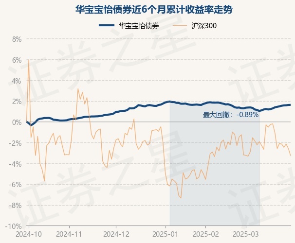 证券之星消息,3月31日,华宝宝怡债券最新单位净值为1.0844元,累计净值为1.2022元,较前一交易日上涨0.01%。历史数据显示该基金近1个月上涨0.32%,近3个月下跌0.13%,近6个月上涨1.62%,近1年上涨2.89%。该基金近6个月的累计收益率走势如下图: