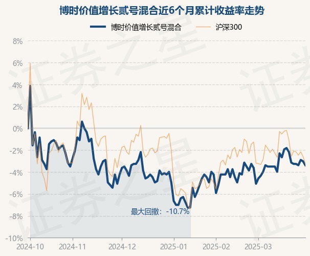证券之星消息,3月31日,博时价值增长贰号混合最新单位净值为0.8元,累计净值为2.291元,较前一交易日下跌0.37%。历史数据显示该基金近1个月上涨1.78%,近3个月上涨1.65%,近6个月下跌3.38%,近1年上涨5.4%。该基金近6个月的累计收益率走势如下图: