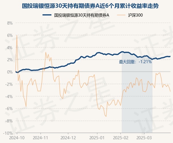 证券之星消息,3月31日,国投瑞银恒源30天持有期债券A最新单位净值为1.0174元,累计净值为1.0524元,较前一交易日上涨0.05%。历史数据显示该基金近1个月上涨0.08%,近3个月下跌0.27%,近6个月上涨2.49%,近1年上涨4.02%。该基金近6个月的累计收益率走势如下图: