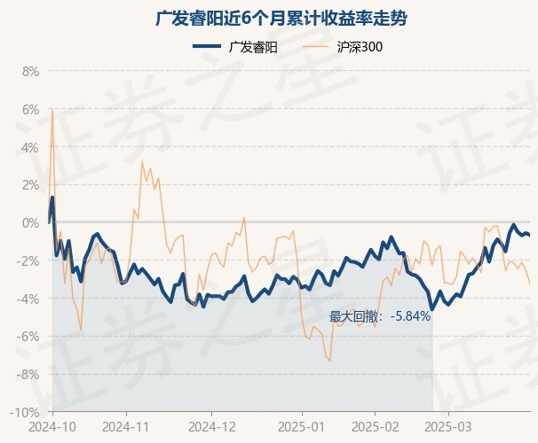 证券之星消息,3月31日,广发睿阳最新单位净值为0.9854元,累计净值为1.9807元,较前一交易日下跌0.1%。历史数据显示该基金近1个月上涨3.64%,近3个月上涨2.43%,近6个月下跌0.7%,近1年上涨5.91%。该基金近6个月的累计收益率走势如下图: