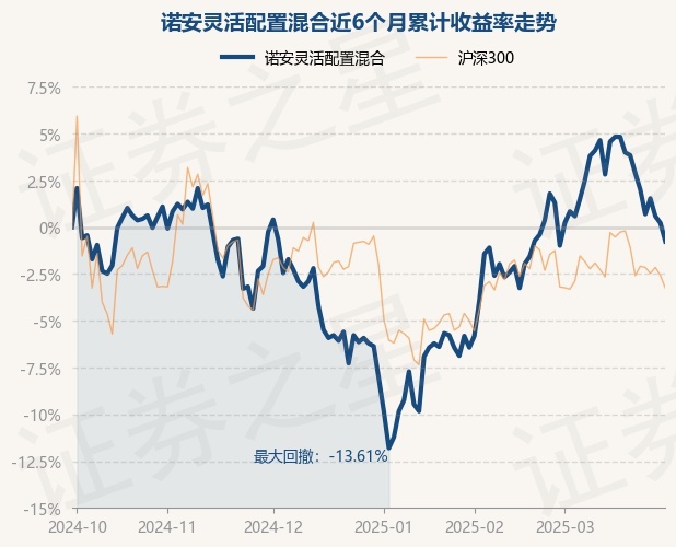 证券之星消息,3月31日,诺安灵活配置混合最新单位净值为2.715元,累计净值为3.295元,较前一交易日下跌0.98%。历史数据显示该基金近1个月上涨0.22%,近3个月上涨7.95%,近6个月下跌0.77%,近1年下跌1.42%。该基金近6个月的累计收益率走势如下图: