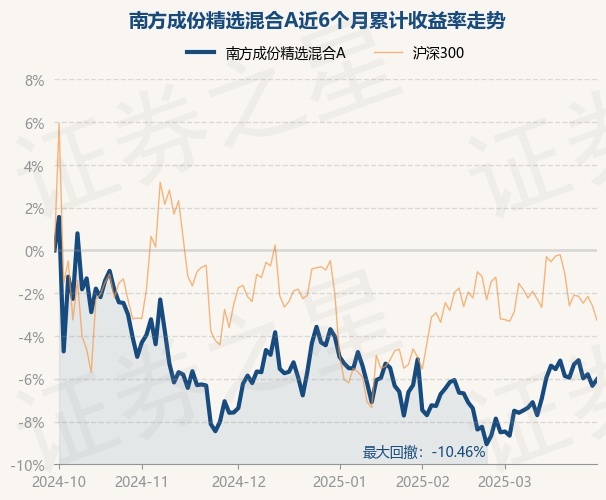 证券之星消息,3月31日,南方成份精选混合A最新单位净值为0.5891元,累计净值为1.9817元,较前一交易日上涨0.32%。历史数据显示该基金近1个月上涨2.7%,近3个月下跌2.08%,近6个月下跌6.03%,近1年上涨9.46%。该基金近6个月的累计收益率走势如下图: