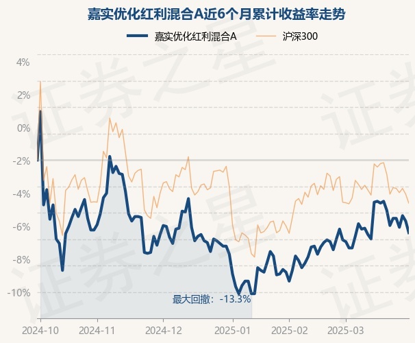 证券之星消息,3月31日,嘉实优化红利混合A最新单位净值为1.391元,累计净值为3.277元,较前一交易日下跌0.93%。历史数据显示该基金近1个月上涨0.58%,近3个月上涨1.76%,近6个月下跌5.5%,近1年上涨3.04%。该基金近6个月的累计收益率走势如下图: