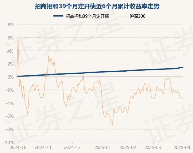 证券之星消息,3月31日,招商招和39个月定开债最新单位净值为1.003元,累计净值为1.1482元,较前一交易日上涨0.08%。历史数据显示该基金近1个月上涨0.34%,近3个月上涨0.69%,近6个月上涨1.4%,近1年上涨2.9%。该基金近6个月的累计收益率走势如下图: