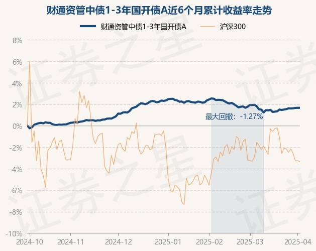 证券之星消息,3月31日,财通资管中债1-3年国开债A最新单位净值为1.0139元,累计净值为1.1119元,较前一交易日上涨0.04%。历史数据显示该基金近1个月下跌0.11%,近3个月下跌0.68%,近6个月上涨1.65%,近1年上涨3.28%。该基金近6个月的累计收益率走势如下图: