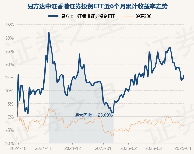 证券之星消息,4月1日,易方达中证香港证券投资ETF最新单位净值为1.5212元,累计净值为1.5212元,较前一交易日上涨0.0%。历史数据显示该基金近1个月下跌1.99%,近3个月上涨2.21%,近6个月上涨14.25%,近1年上涨68.09%。该基金近6个月的累计收益率走势如下图: