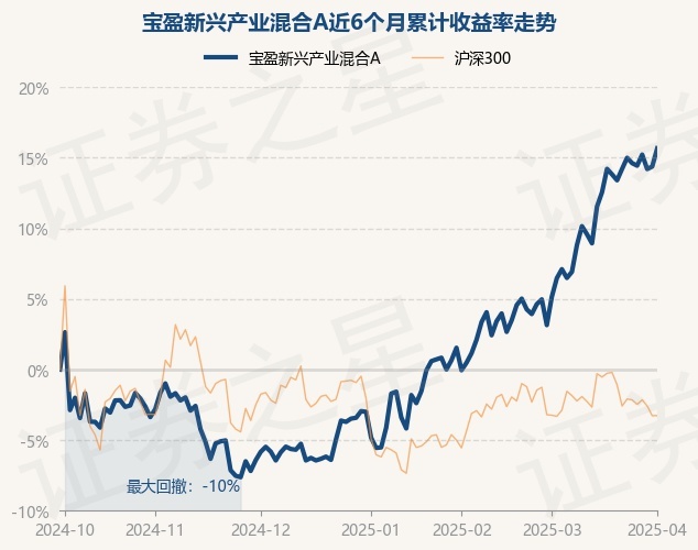证券之星消息,4月1日,宝盈新兴产业混合A最新单位净值为0.9146元,累计净值为0.9146元,较前一交易日上涨1.13%。历史数据显示该基金近1个月上涨12.14%,近3个月上涨19.24%,近6个月上涨15.67%,近1年上涨15.89%。该基金近6个月的累计收益率走势如下图: