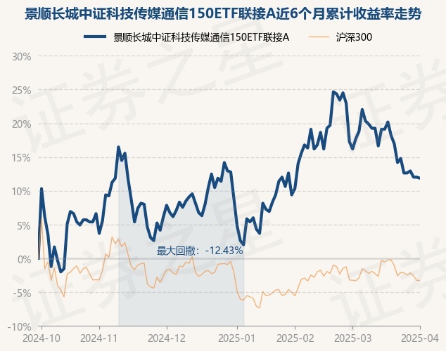 证券之星消息,4月1日,景顺长城中证科技传媒通信150ETF联接A最新单位净值为0.726元,累计净值为0.726元,较前一交易日下跌0.14%。历史数据显示该基金近1个月下跌4.6%,近3个月上涨2.83%,近6个月上涨11.86%,近1年上涨25.17%。该基金近6个月的累计收益率走势如下图:
