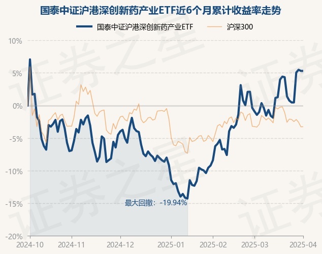 证券之星消息,4月1日,国泰中证沪港深创新药产业ETF最新单位净值为0.613元,累计净值为0.613元,较前一交易日上涨0.0%。历史数据显示该基金近1个月上涨9.84%,近3个月上涨20.43%,近6个月上涨9.43%,近1年上涨24.14%。该基金近6个月的累计收益率走势如下图: