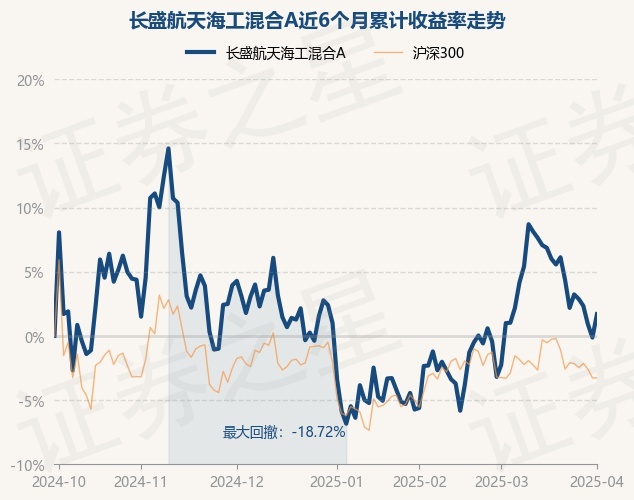 证券之星消息,4月1日,长盛航天海工混合A最新单位净值为1.4337元,累计净值为1.9777元,较前一交易日上涨1.83%。历史数据显示该基金近1个月上涨5.06%,近3个月上涨0.7%,近6个月上涨1.7%,近1年上涨7.55%。该基金近6个月的累计收益率走势如下图: