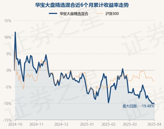 证券之星消息,4月1日,华宝大盘精选混合最新单位净值为2.193元,累计净值为2.6998元,较前一交易日下跌0.33%。历史数据显示该基金近1个月下跌3.63%,近3个月下跌5.6%,近6个月下跌10.23%,近1年上涨3.48%。该基金近6个月的累计收益率走势如下图: