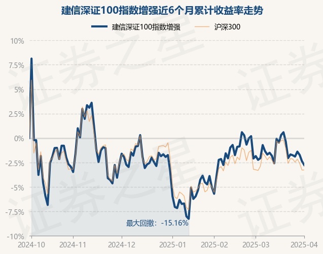 证券之星消息,4月1日,建信深证100指数增强最新单位净值为2.097元,累计净值为2.097元,较前一交易日下跌0.39%。历史数据显示该基金近1个月下跌0.69%,近3个月上涨0.69%,近6个月下跌2.76%,近1年上涨8.43%。该基金近6个月的累计收益率走势如下图: