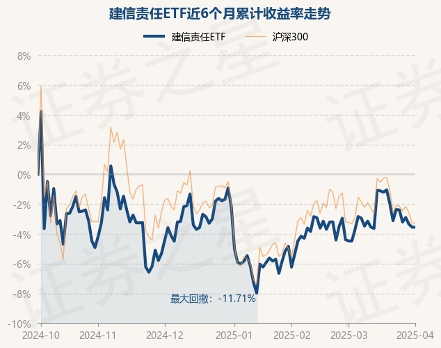 证券之星消息,4月1日,建信责任ETF最新单位净值为2.4781元,累计净值为2.9563元,较前一交易日上涨0.0%。历史数据显示该基金近1个月上涨0.9%,近3个月下跌1.37%,近6个月下跌3.52%,近1年上涨14.54%。该基金近6个月的累计收益率走势如下图: