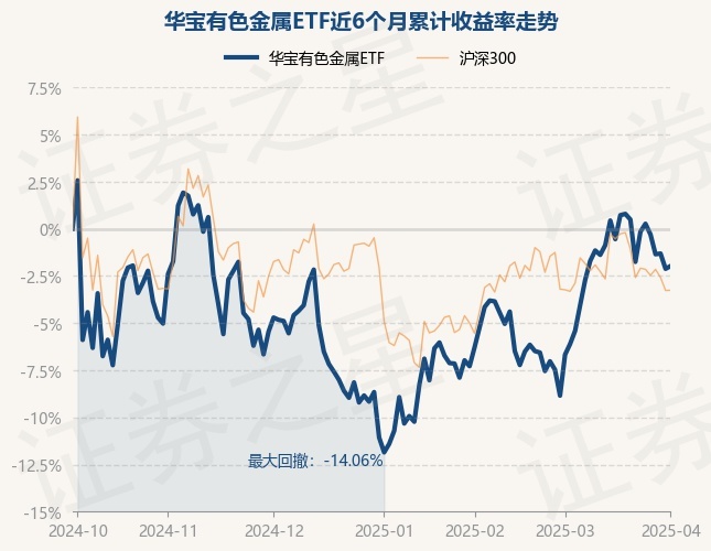 证券之星消息,4月1日,华宝有色金属ETF最新单位净值为1.141元,累计净值为1.141元,较前一交易日上涨0.15%。历史数据显示该基金近1个月上涨7.54%,近3个月上涨10.22%,近6个月下跌1.98%,近1年上涨2.84%。该基金近6个月的累计收益率走势如下图: