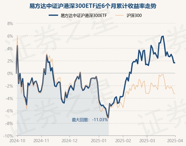 证券之星消息,4月1日,易方达中证沪港深300ETF最新单位净值为0.9583元,累计净值为0.9583元,较前一交易日上涨0.0%。历史数据显示该基金近1个月上涨0.43%,近3个月上涨3.53%,近6个月上涨1.8%,近1年上涨19.82%。该基金近6个月的累计收益率走势如下图: