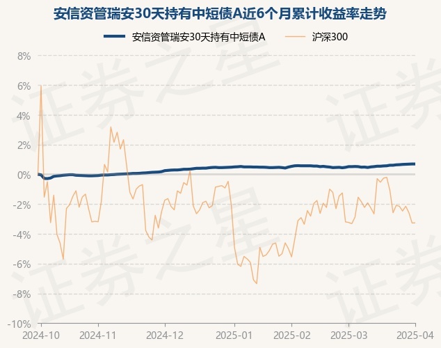 安信资管瑞安30天持有中短债A为债券型-中短债基金,根据最新一期基金季报显示,该基金资产配置:无股票类资产,债券占净值比89.71%,现金占净值比6.95%。