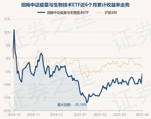 证券之星消息,4月1日,招商中证疫苗与生物技术ETF最新单位净值为0.6746元,累计净值为0.6746元,较前一交易日上涨3.88%。历史数据显示该基金近1个月上涨4.12%,近3个月上涨5.47%,近6个月下跌6.14%,近1年下跌9.52%。该基金近6个月的累计收益率走势如下图: