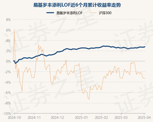 证券之星消息,4月1日,易基岁丰添利LOF最新单位净值为1.6939元,累计净值为2.6049元,较前一交易日上涨0.04%。历史数据显示该基金近1个月上涨0.19%,近3个月上涨0.21%,近6个月上涨2.7%,近1年上涨4.11%。该基金近6个月的累计收益率走势如下图: