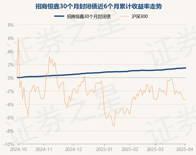 证券之星消息,4月1日,招商恒鑫30个月封闭债最新单位净值为1.0093元,累计净值为1.0654元,较前一交易日上涨0.01%。历史数据显示该基金近1个月上涨0.34%,近3个月上涨0.65%,近6个月上涨1.45%,近1年上涨3.06%。该基金近6个月的累计收益率走势如下图: