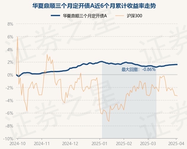 证券之星消息,4月1日,华夏鼎顺三个月定开债A最新单位净值为1.0555元,累计净值为1.227元,较前一交易日上涨0.01%。历史数据显示该基金近1个月上涨0.29%,近3个月下跌0.3%,近6个月上涨1.58%,近1年上涨3.07%。该基金近6个月的累计收益率走势如下图: