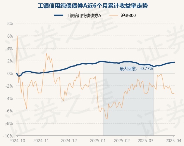 证券之星消息,4月1日,工银信用纯债债券A最新单位净值为1.4758元,累计净值为1.5168元,较前一交易日上涨0.02%。历史数据显示该基金近1个月上涨0.38%,近3个月上涨0.07%,近6个月上涨1.7%,近1年上涨3.28%。该基金近6个月的累计收益率走势如下图: