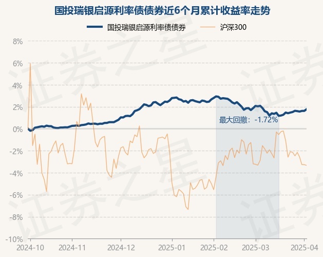 证券之星消息,4月1日,国投瑞银启源利率债债券最新单位净值为1.0143元,累计净值为1.0323元,较前一交易日上涨0.0%。历史数据显示该基金近1个月下跌0.25%,近3个月下跌0.92%,近6个月上涨1.62%,近1年上涨3.16%。该基金近6个月的累计收益率走势如下图: