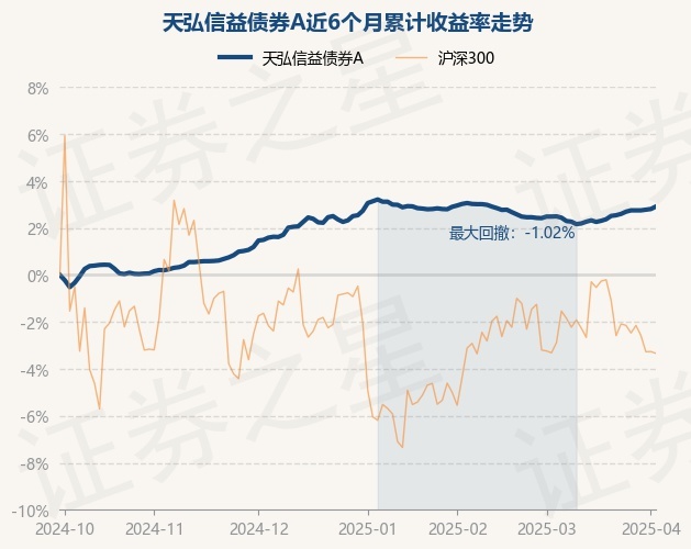证券之星消息,4月2日,天弘信益债券A最新单位净值为1.0892元,累计净值为1.184元,较前一交易日上涨0.1%。历史数据显示该基金近1个月上涨0.48%,近3个月下跌0.15%,近6个月上涨2.91%,近1年上涨4.96%。该基金近6个月的累计收益率走势如下图: