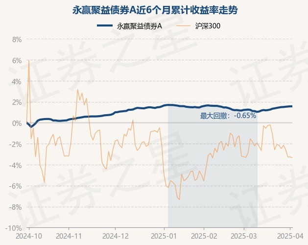 证券之星消息,4月2日,永赢聚益债券A最新单位净值为1.1204元,累计净值为1.2384元,较前一交易日上涨0.0%。历史数据显示该基金近1个月上涨0.42%,近3个月下跌0.05%,近6个月上涨1.59%,近1年上涨3.09%。该基金近6个月的累计收益率走势如下图: