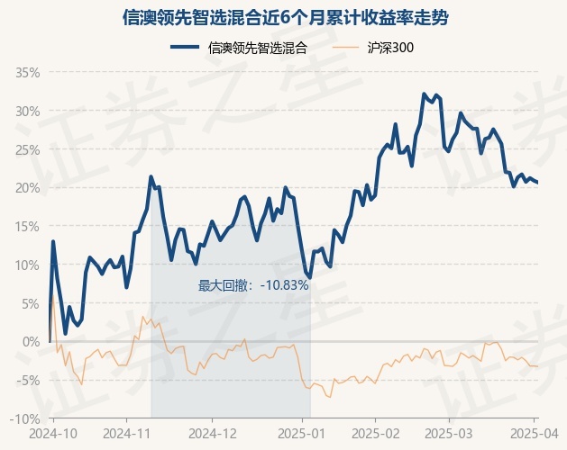 证券之星消息,4月2日,信澳领先智选混合最新单位净值为0.698元,累计净值为0.698元,较前一交易日下跌0.19%。历史数据显示该基金近1个月下跌3.7%,近3个月上涨7.8%,近6个月上涨20.57%,近1年上涨28.21%。该基金近6个月的累计收益率走势如下图: