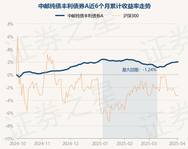 证券之星消息,4月2日,中邮纯债丰利债券A最新单位净值为1.1082元,累计净值为1.1742元,较前一交易日上涨0.0%。历史数据显示该基金近1个月上涨0.44%,近3个月下跌0.21%,近6个月上涨2.03%,近1年上涨3.41%。该基金近6个月的累计收益率走势如下图: