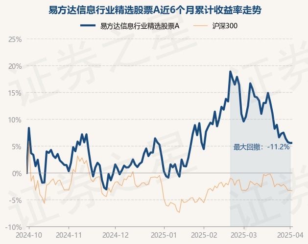 证券之星消息,4月2日,易方达信息行业精选股票A最新单位净值为0.8903元,累计净值为0.8903元,较前一交易日上涨0.01%。历史数据显示该基金近1个月下跌4.86%,近3个月上涨5.29%,近6个月上涨5.59%,近1年上涨23.19%。该基金近6个月的累计收益率走势如下图: