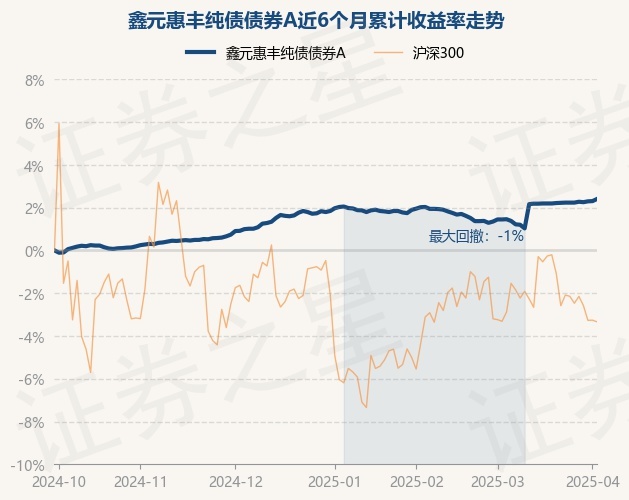 证券之星消息,4月2日,鑫元惠丰纯债债券A最新单位净值为1.0288元,累计净值为1.0922元,较前一交易日上涨0.1%。历史数据显示该基金近1个月上涨1.04%,近3个月上涨0.42%,近6个月上涨2.4%,近1年上涨4.34%。该基金近6个月的累计收益率走势如下图: