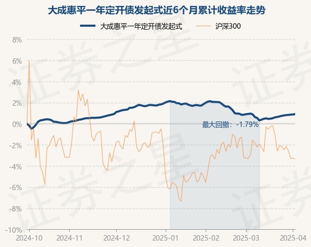 证券之星消息,4月2日,大成惠平一年定开债发起式最新单位净值为1.0433元,累计净值为1.1493元,较前一交易日上涨0.04%。历史数据显示该基金近1个月上涨0.06%,近3个月下跌1.08%,近6个月上涨0.91%,近1年上涨2.74%。该基金近6个月的累计收益率走势如下图: