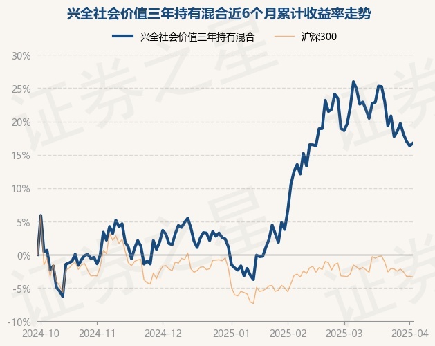 证券之星消息,4月2日,兴全社会价值三年持有混合最新单位净值为1.5919元,累计净值为1.5919元,较前一交易日上涨0.33%。历史数据显示该基金近1个月下跌1.87%,近3个月上涨18.53%,近6个月上涨16.73%,近1年上涨30.57%。该基金近6个月的累计收益率走势如下图: