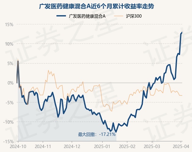 证券之星消息,4月2日,广发医药健康混合A最新单位净值为0.5371元,累计净值为0.5371元,较前一交易日上涨0.36%。历史数据显示该基金近1个月上涨14.89%,近3个月上涨25.23%,近6个月上涨12.88%,近1年上涨24.36%。该基金近6个月的累计收益率走势如下图: