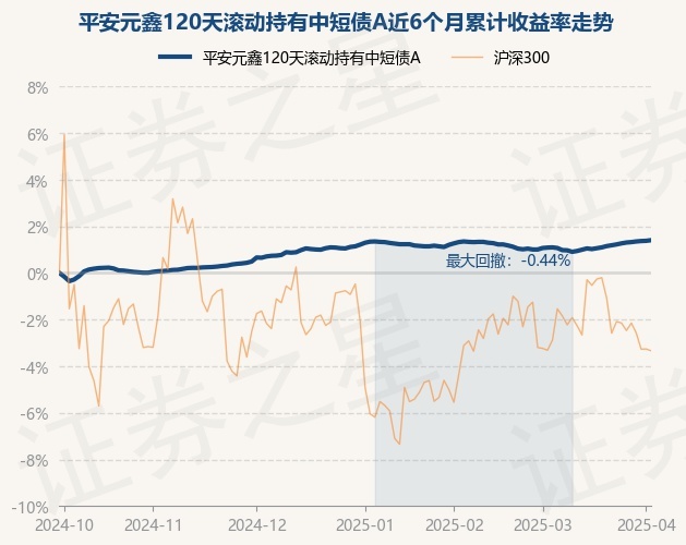 证券之星消息,4月2日,平安元鑫120天滚动持有中短债A最新单位净值为1.1198元,累计净值为1.1198元,较前一交易日上涨0.03%。历史数据显示该基金近1个月上涨0.39%,近3个月上涨0.11%,近6个月上涨1.4%,近1年上涨2.52%。该基金近6个月的累计收益率走势如下图: