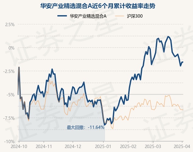 证券之星消息,4月2日,华安产业精选混合A最新单位净值为0.9371元,累计净值为0.9371元,较前一交易日上涨0.04%。历史数据显示该基金近1个月上涨0.5%,近3个月上涨12.5%,近6个月上涨6.9%,近1年上涨13.55%。该基金近6个月的累计收益率走势如下图: