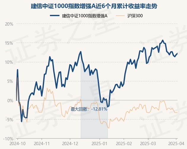 证券之星消息,4月2日,建信中证1000指数增强A最新单位净值为1.6604元,累计净值为2.1918元,较前一交易日上涨0.3%。历史数据显示该基金近1个月上涨2.37%,近3个月上涨9.92%,近6个月上涨12.21%,近1年上涨16.67%。该基金近6个月的累计收益率走势如下图: