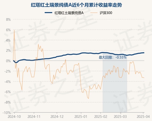 证券之星消息,4月2日,红塔红土瑞景纯债A最新单位净值为1.0305元,累计净值为1.1335元,较前一交易日上涨0.0%。历史数据显示该基金近1个月上涨0.45%,近3个月上涨0.17%,近6个月上涨1.59%,近1年上涨2.99%。该基金近6个月的累计收益率走势如下图: