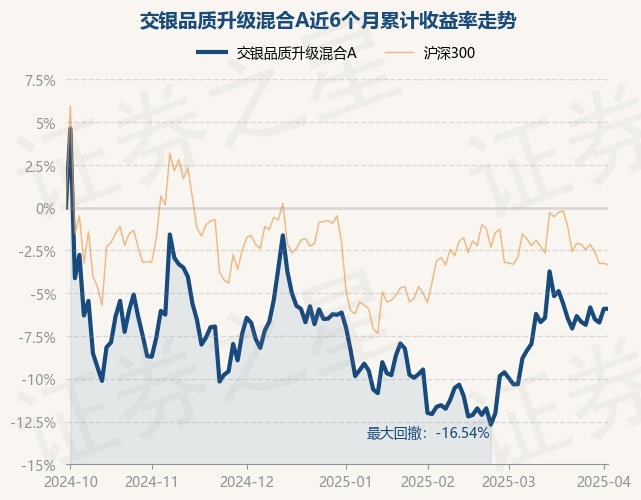 证券之星消息,4月2日,交银品质升级混合A最新单位净值为1.5141元,累计净值为1.5141元,较前一交易日上涨0.0%。历史数据显示该基金近1个月上涨4.28%,近3个月上涨1.38%,近6个月下跌5.75%,近1年下跌10.37%。该基金近6个月的累计收益率走势如下图:
