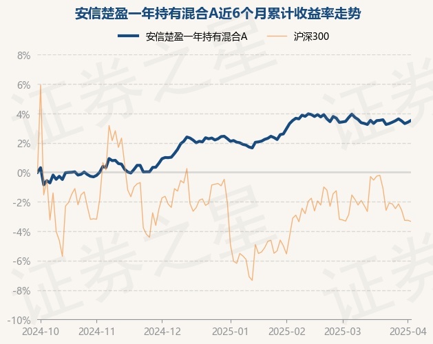 证券之星消息,4月2日,安信楚盈一年持有混合A最新单位净值为1.0325元,累计净值为1.0325元,较前一交易日上涨0.12%。历史数据显示该基金近1个月上涨0.13%,近3个月上涨1.38%,近6个月上涨3.52%,近1年上涨6.09%。该基金近6个月的累计收益率走势如下图: