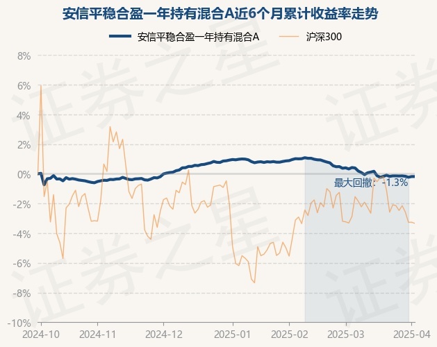 证券之星消息,4月2日,安信平稳合盈一年持有混合A最新单位净值为1.0735元,累计净值为1.0735元,较前一交易日上涨0.0%。历史数据显示该基金近1个月下跌0.37%,近3个月下跌0.95%,近6个月上涨0.0%,近1年上涨1.9%。该基金近6个月的累计收益率走势如下图: