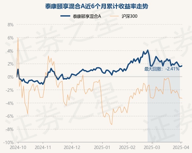 证券之星消息,4月2日,泰康颐享混合A最新单位净值为1.367元,累计净值为1.367元,较前一交易日上涨0.1%。历史数据显示该基金近1个月上涨0.0%,近3个月上涨0.92%,近6个月上涨1.66%,近1年上涨4.19%。该基金近6个月的累计收益率走势如下图: